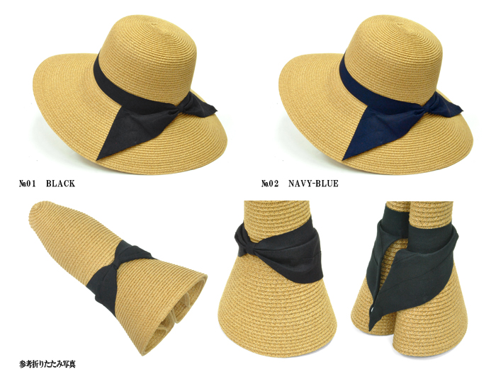 レディース つば広 りぼん ハット 帽子 女優帽 UV対策 麦わら帽子 折りたたみ サイズ調整可能 日焼け防止 対策 uv 日よけ アウトドア レジャー